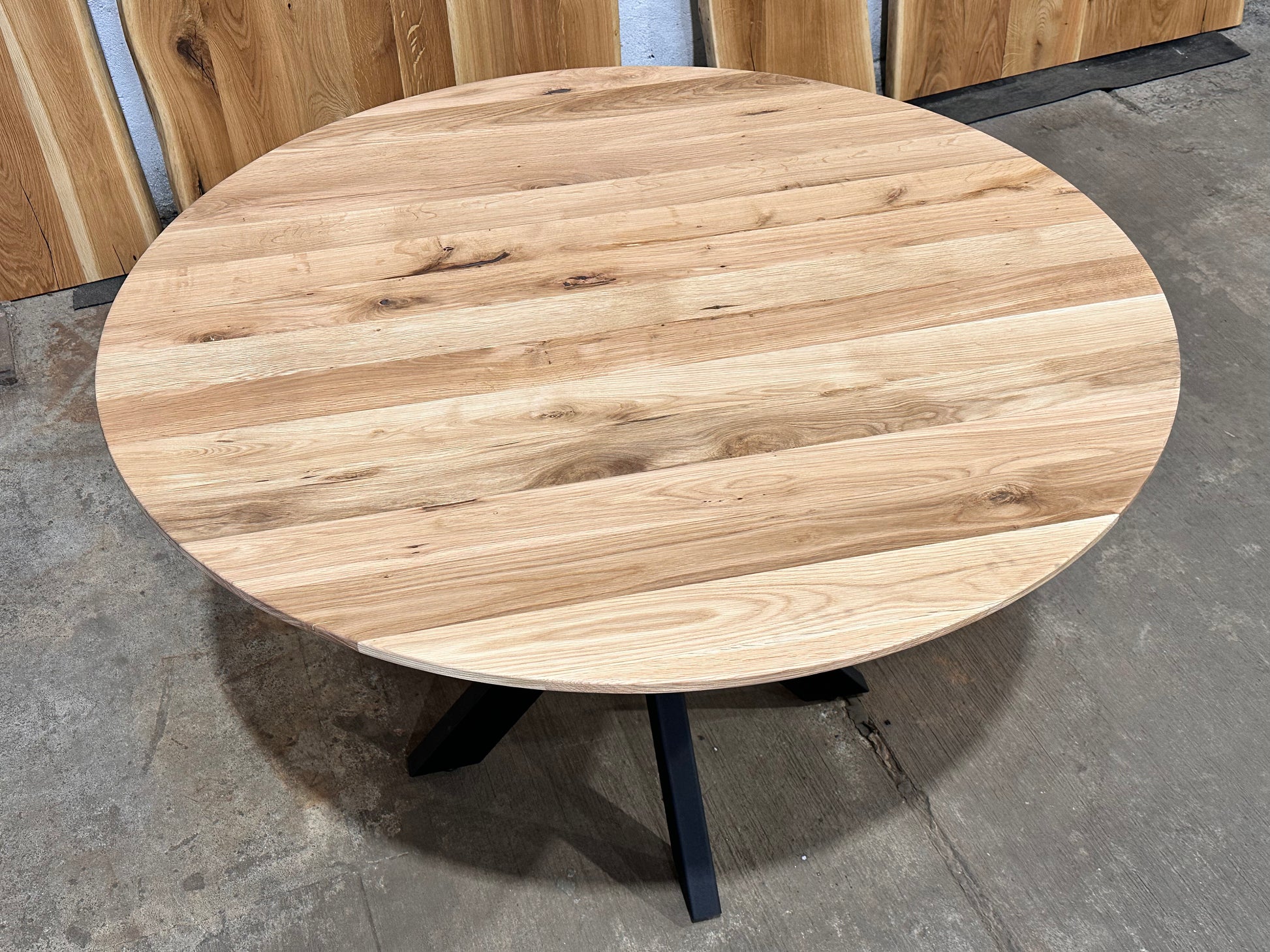 Eleganter Schweizerkanten-Rundtisch aus massiver Eiche